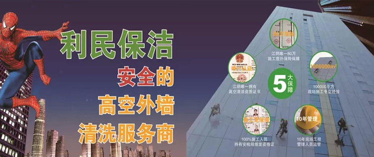 我們的外墻清洗業務包括:外墻清潔、外墻防水補漏、外墻涂料粉刷、LED樓體亮化工程高空安裝、外墻防水工程高空施工等系列高空作業項目,是物業公司、景觀工程公司、廣告公司、建筑、安裝公司、幕墻公司、各企事業單位等最佳高空作業服務專業供應商.專業安全高效,承包高空外墻清洗,.專業的施工團隊,所有人員均持證上崗,高空人員均購買100萬保險,21年1000000平方的外墻清洗經驗,優質的服務..[詳細]